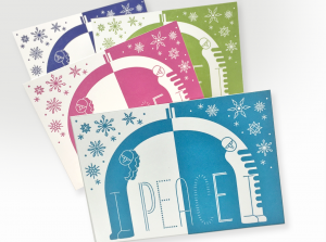 In the meantime, we hope you will support us and local artists by giving to our annual fund and purchasing hand-made gifts from our Holiday Store. Modeled after our first public art project by Barry Gunderson, we have created a special edition of PEACE postcards to connect our past with a current, heartfelt holiday message based on the purpose for which it was created by Gunderson – one of peace, “greeting, accommodation, and celebration of differences”. Donors of $75 or more will receive a free set of these beautiful and colorful postcards to spread the message of peace with friends and loved ones.