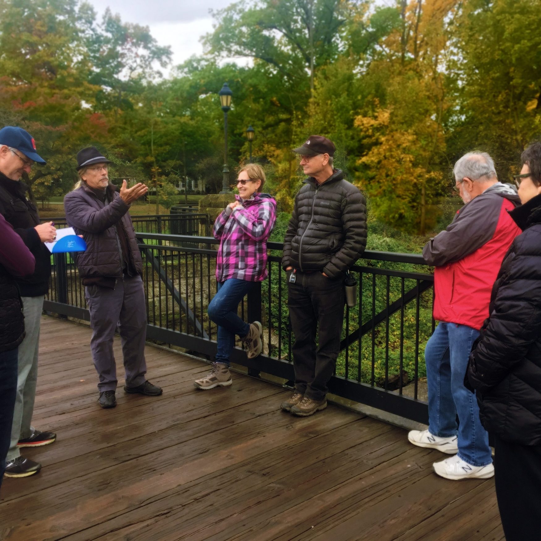 We moved from one beautiful space to another, pointing out a blue heron, the iridescence of porcelain berries, the fiery color of tupelo leaves, and the length of our shadows as they touched fallen leaves sparkling with domes of dew. By the end of our program, we had lots of haikus to share and even read some classics that felt appropriate and sparked more great conversation. A hike like this offered a much needed reminder as we all seemed to take a final glance and departed, refreshed. The rushing water below the bridge giggled as we got back in our cars, about how ego thinks it’s an island in the stream when it’s really just a bubble. As some of us rushed away, we knew we looked forward to rushing back soon.
