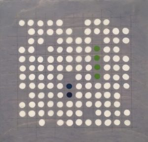 Kate Snow is a painter and printmaker born in Charlotte, North Carolina. After five years working and learning at the cooperative art space, Zygote Press, she began actively showing work in 2016. Her stripped down approach relies heavily on elements of design, such as line, shape and pattern, to explore themes around natural and imposed boundaries, community, and globalism. She is currently co-Executive Director of Zygote and works from her home studio in Cleveland Heights.