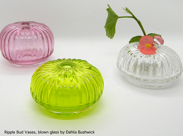While born in Pennsylvania, Dahlia Bushwick has spent much of her adult life in various glass communities around the country learning and developing her work. Dahlia strives to utilize the optics and malleability of glass to create an entire sensory experience while using her products. Her glass vessels highlight texture, color and light. Currently living in Kent, Ohio, Dahlia freelances for other artists while continuing to create and develop her own work.