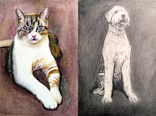 View actual samples of portraits by participating Pet Project artists in the Heights Arts gallery, or see samples below.