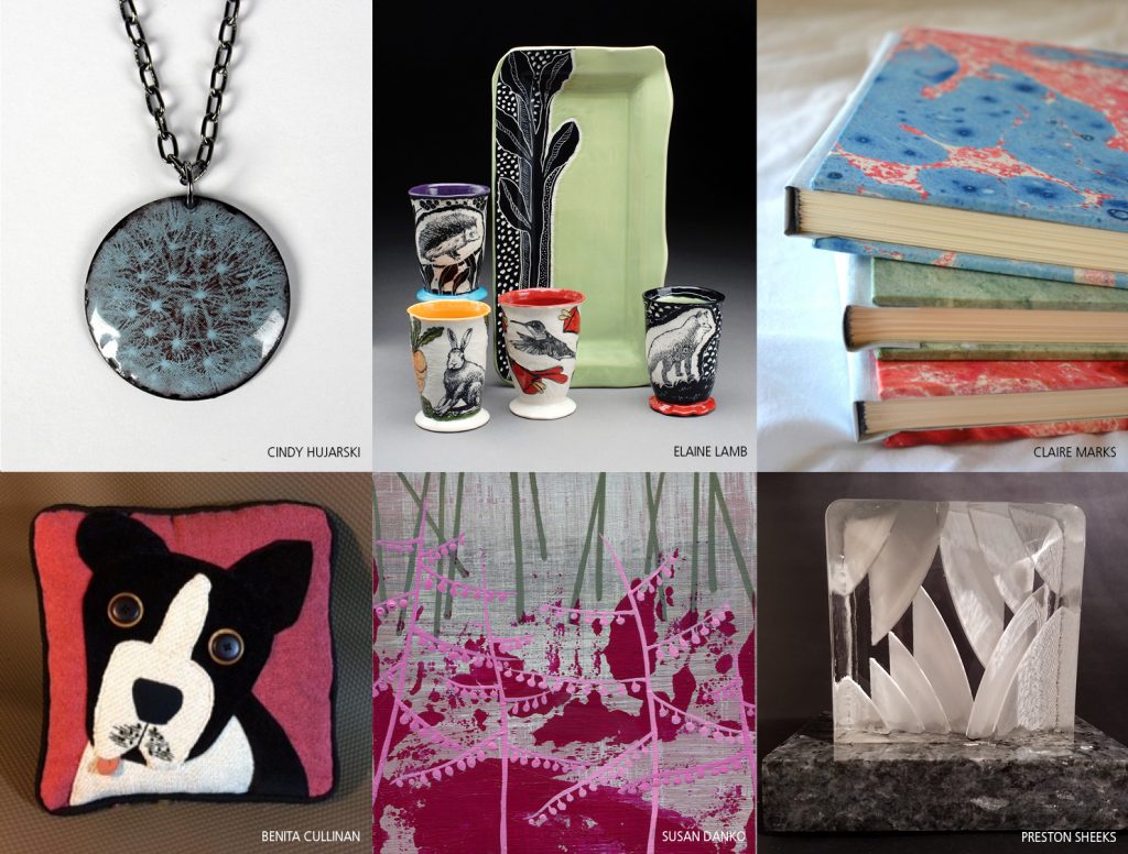 In addition to ceramics, jewelry, art on paper and glass by popular Cleveland favorites such as Lynn Lofton, Sandra Curry, Jen Craun, and Shayna Roth Pentacost, we’re thrilled about the variety of new works from more than 20 new artists, ranging from Screen Prints by Triple Threat Press to embroidered bags by Coretta Kutash, and jewelry by Alyson Holobaugh.  Visitors will also find handmade artist cards and ornaments, photography, handknits and printed tees, artisan items for the home and littlest family members, plus local music CDs and chapbooks by Cleveland poets.
