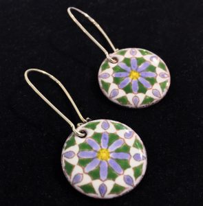 “There is something magical about the way colorful enamel, metal, and light can be combined. When I make jewelry, I like to think that I’m translating positive energy into joyful objects. I think about the eventual wearer and hope the the piece will bring them joy. Making art is exciting to me, it’s an electric feeling. I always look forward to seeing what the art-making will bring…. as if I’m a conduit for creative energy, open-minded and eager, awaiting the next inspiration. When someone says ‘these are my favorite earrings,’ I actually hear ‘I feel good (happy, joyful) when I wear these.’ Creating things that make people happy makes me happy.”