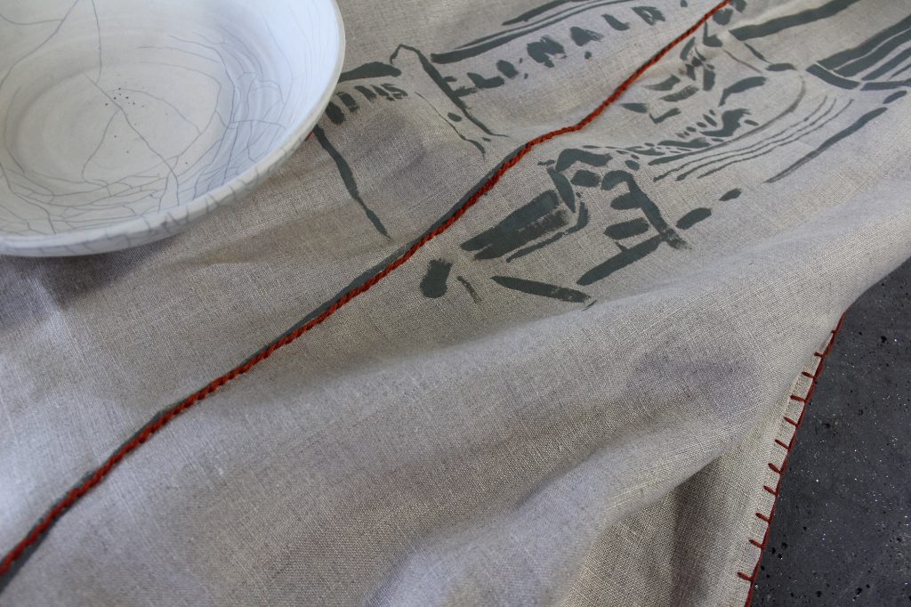 The ceramic bowl is by Billy Ritter and the table linen was a collaboration between Krista Tomorowitz and Timothy Callaghan