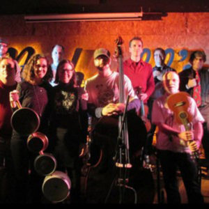 Trepanning Trio is an acoustic instrumental ensemble which makes oddly beautiful music using classical, traditional and handmade instruments (i.e., viola da gamba, guzheng, pan lids screwed onto sticks and played with violin bows, etc). Contrary to its name, Trepanning Trio performs with a rotating lineup of six to fourteen musicians.