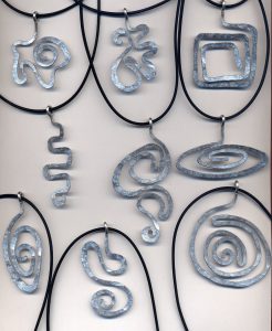 For decades, Catherine Butler’s spunky curiosities have been bringing delight to those they adorn and spicing up peoples lives and interactions. A Cleveland native, Butler earned her BFA from the Cleveland Institute of Art in 1981 with a major in Jewelry and Silversmithing. Her work can be found in the collections of the Racine Art Museum in Wisconsin, the Ohio Craft Museum and in the Danner Foundation’s Die Neue Sammlung (one of the foremost collections of contemporary and 20th century jewelry in the world), which is permanently housed in the Pinakothek der Moderne in Munich, Germany. Butler is also the recipient of two Ohio Arts Council Individual Artist Fellowships. In addition to making her work, Catherine has taught classes and workshops at all levels, from children’s classes at the Cleveland Museum of Art to undergraduate students at Edinboro University of Pennsylvania. She currently teaches art at Laurel School in Shaker Heights and has been teaching a free drop in art class for The Sculpture Center at Circle Health Services.